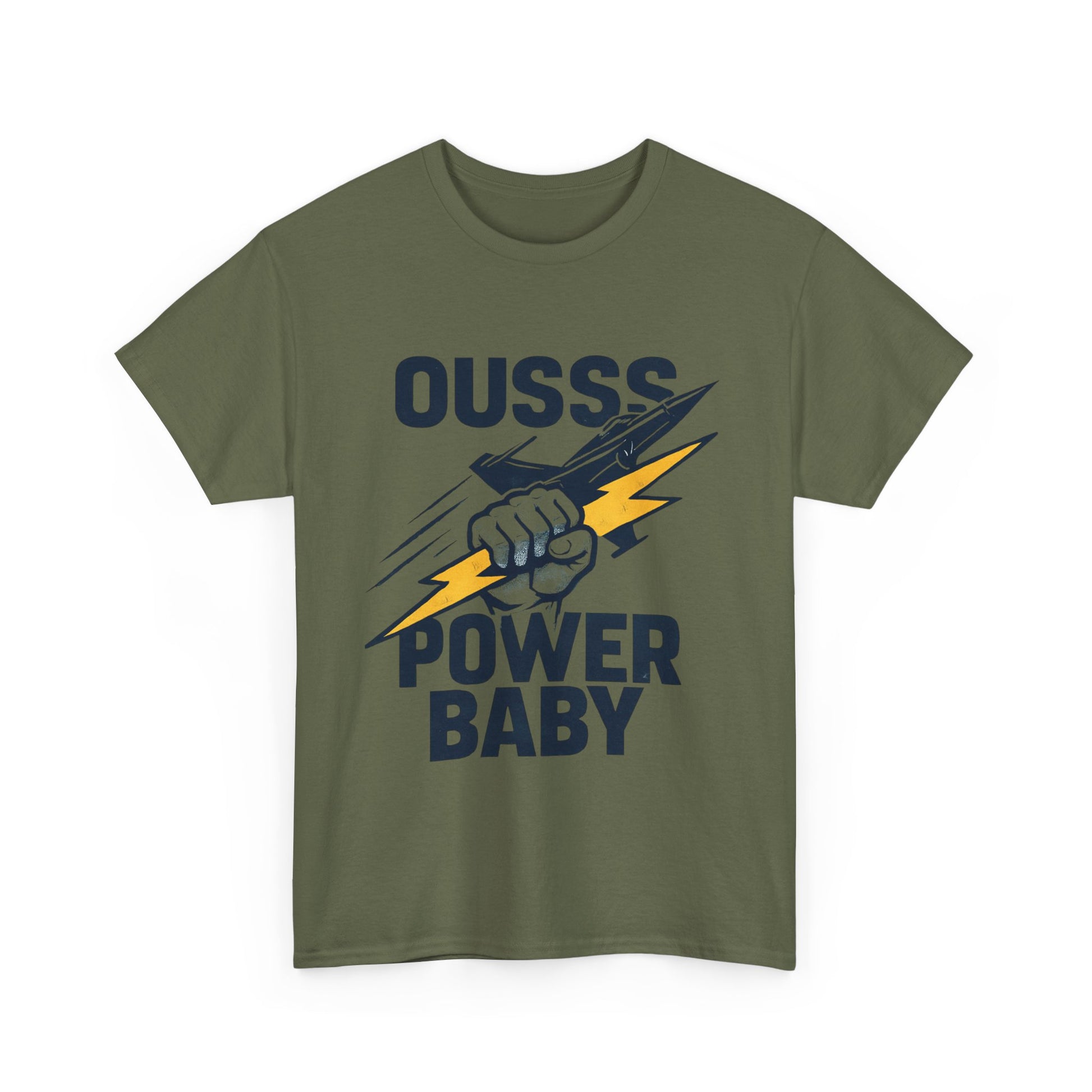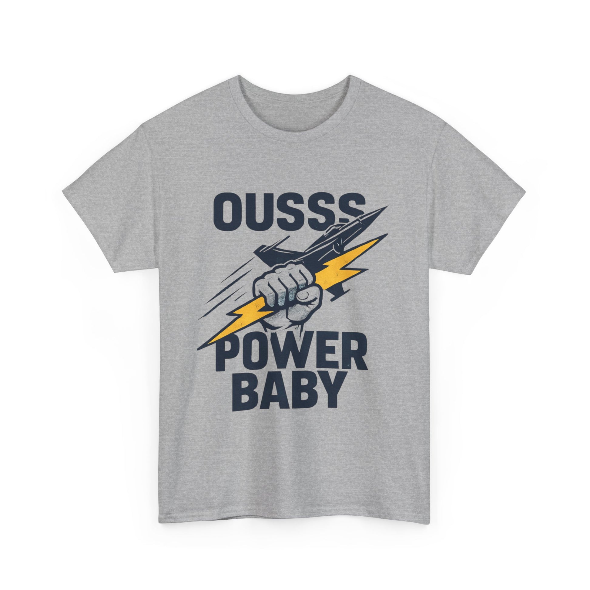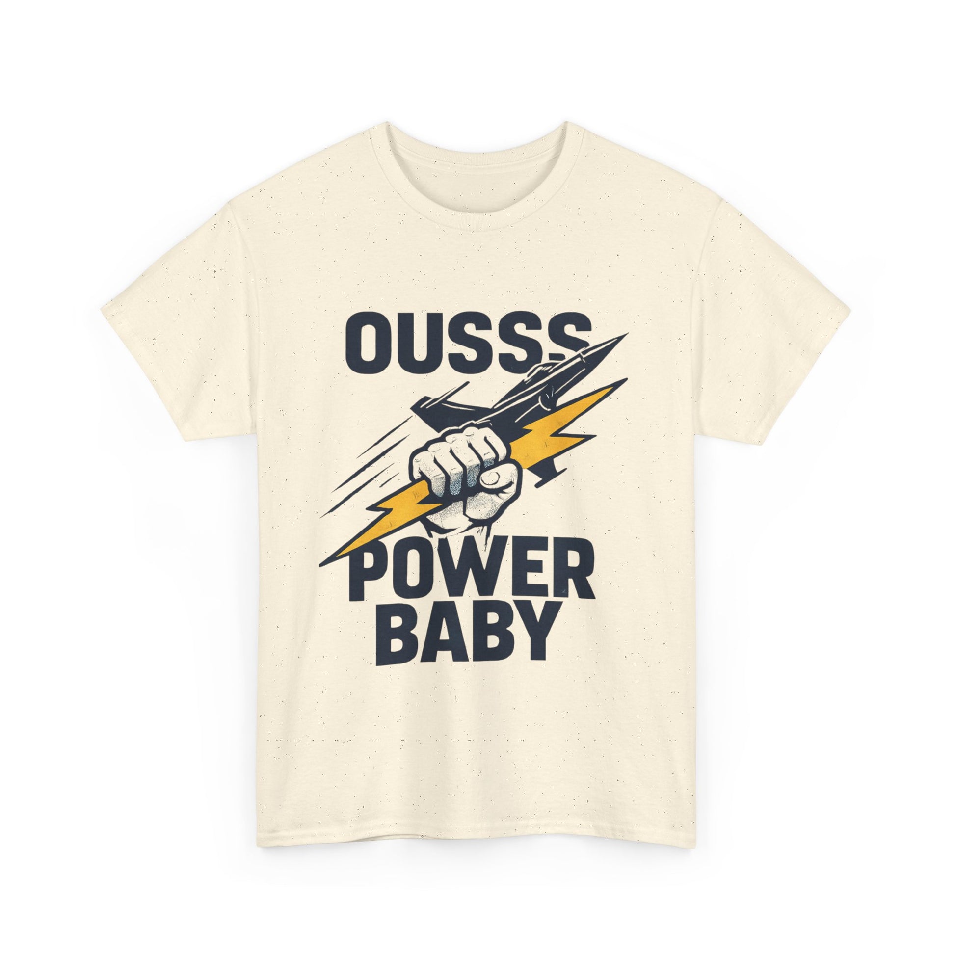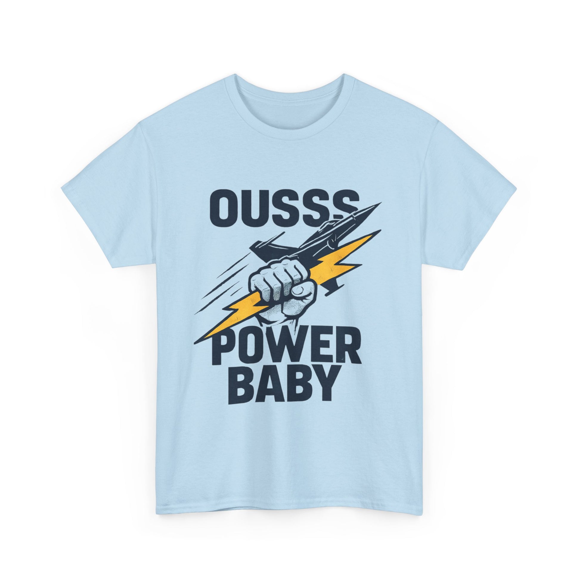 Power Baby Graphic Tee – 'OUSSS Power Baby' Jet Lightning Fist Shirt