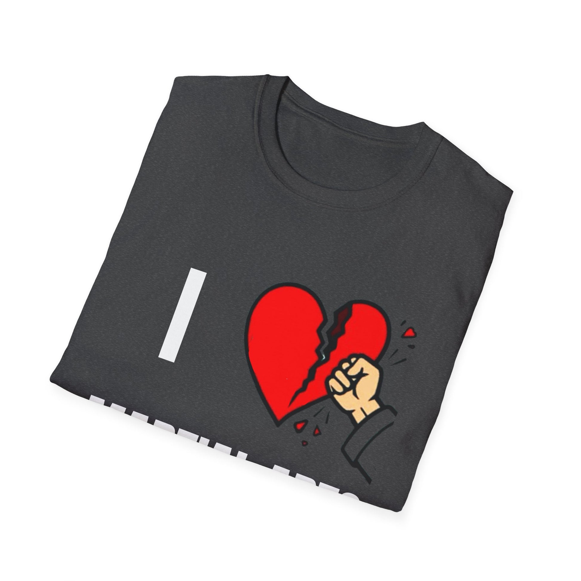 A soft, everyday tee that speaks with a wink and a heartbeat. This lightweight cotton shirt features a bold, hand-drawn graphic of a fist cracking a red heart — simple, honest, and a little bit defiant. Wear it when you want to turn a private emotion into something visible: a quiet protest, a moment of catharsis, or a playful nod to heartbreak. The smooth, durable fabric sits comfortably against skin and holds printed detail with clarity, while the classic crew cut keeps the look clean and wearable with jeans, layered under a jacket, or tossed in a travel bag for spontaneous outings. Ethically sourced cotton and a tear-away label keep comfort and conscience aligned, so the shirt feels as good as the statement it makes.